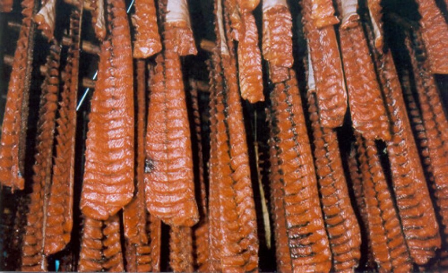 Education Sugt'stun Word of the Week - July 19, 2017 KBBI | By Casey Marsh Published July 18, 2017 at 11:31 AM AKDT Facebook Twitter LinkedIn Email Listen • 1:01 USFWS Tam'uq - dried fishEmma seg-uq qutmi, tam'uuliluni.Translation:Gramdma is cutting fish on the beach, making dried fish.