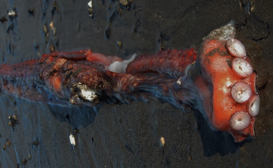 This isn’t the first time that Frizzell says she has come across tentacles on the beach. She told KBBI that in April 2014 she found similar tentacles washed up on Bishop’s Beach in Homer.