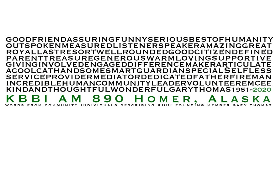 The KBBI Board of Directors is proud to announce the dedication and renaming of the principal on-air studio as the 'Gary Thomas Studio'. Gary served this community at Kachemak Emergency Services, as a member of the Homer Volunteer Fire Department, as editor and publisher of the Homer News and as volunteer host and auctioneer for decades worth of fundraising and advocacy events across the peninsula. He was the general manager of KBBI from 1980 until 1991 and helped the station raise funds and celebrate milestones long after he was employed by the station. The resolution is in full below.