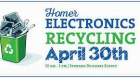 The Electronics Recycling Event will be in Homer on April 30, from 10 AM until 2 PM at Spenard Builders Supply. It's an opportunity to safely discard obsolete, old, or broken electronics.